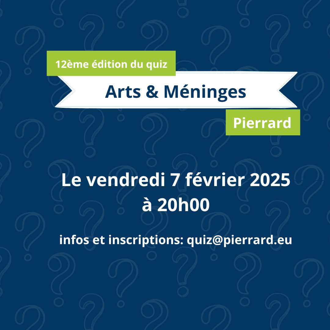 Le 7 février prochain, le élèves de 6TT et 6TQ de Pierrard vous invitent à leur Quiz « Arts et Méninges ».Un savant mélange de culture générale et de défis vous garantit une soirée conviviale.Par équipes de 3 à 6 personnes, vous aurez l’occasion de vous mesurer à 10 questionnaires thématiques concoctés pour l’occasion:- l’année 2024- Milan-…