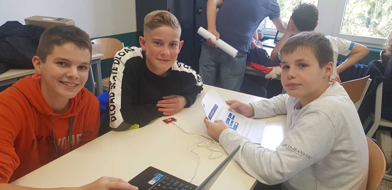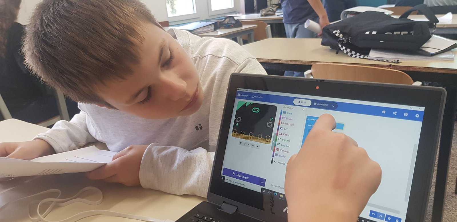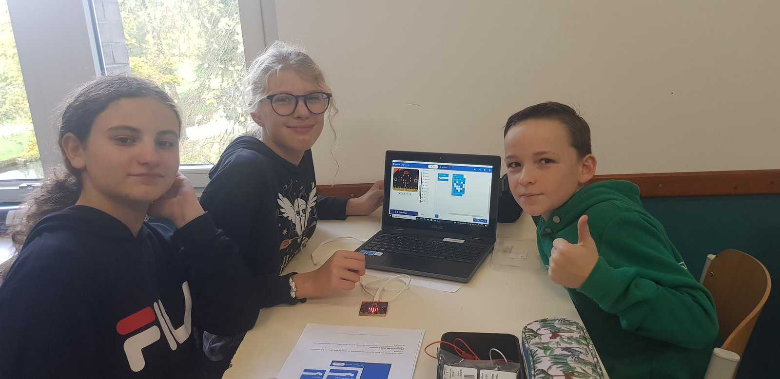 - découvert le microbit et le potager connecté : l’objectif était de comprendre comment fonctionnent les serres connectées pour l’arrosage automatique lorsque la terre est trop sèche (1e commune)