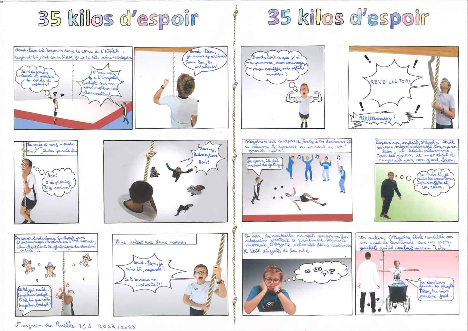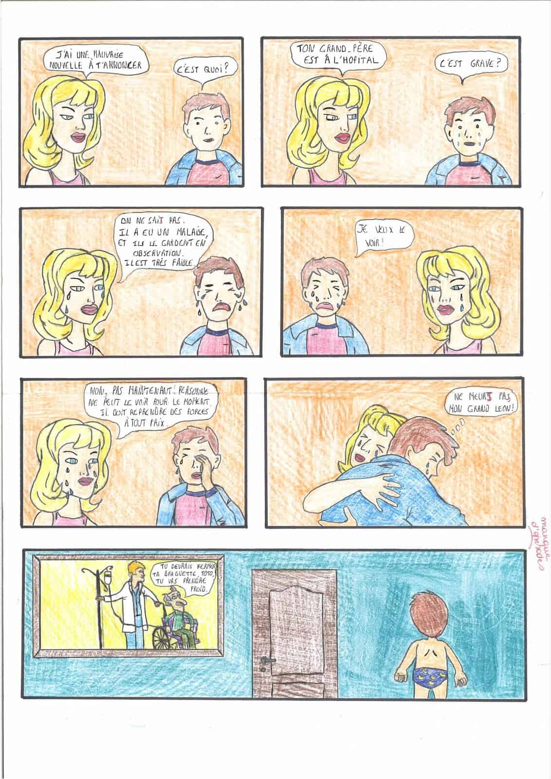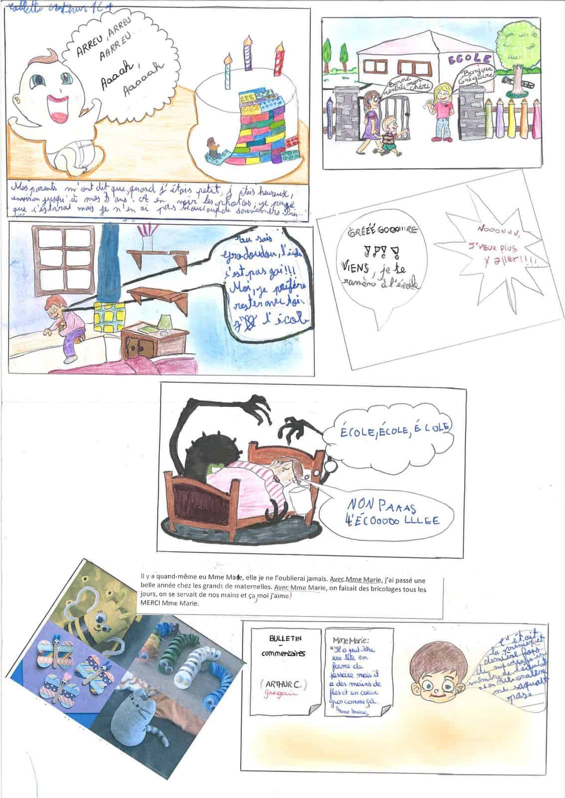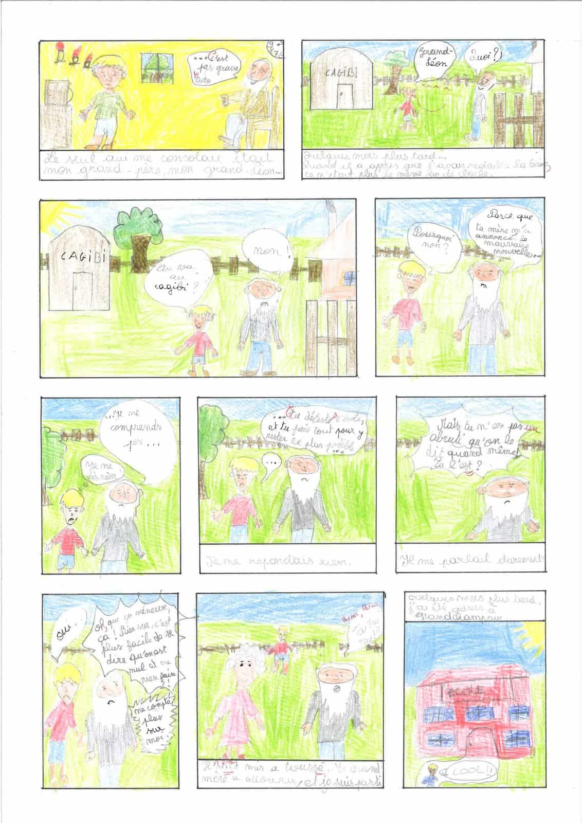 Le travail demandé consistait en la réalisation d’une planche de bande dessinée représentant un épisode apprécié par chaque élève.