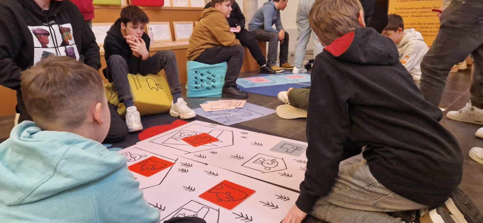 Ce lundi, nous élèves sont partis à la découverte des contes et légendes ainsi que de l’exposition sur les contes au carré de Loïc Gaume.