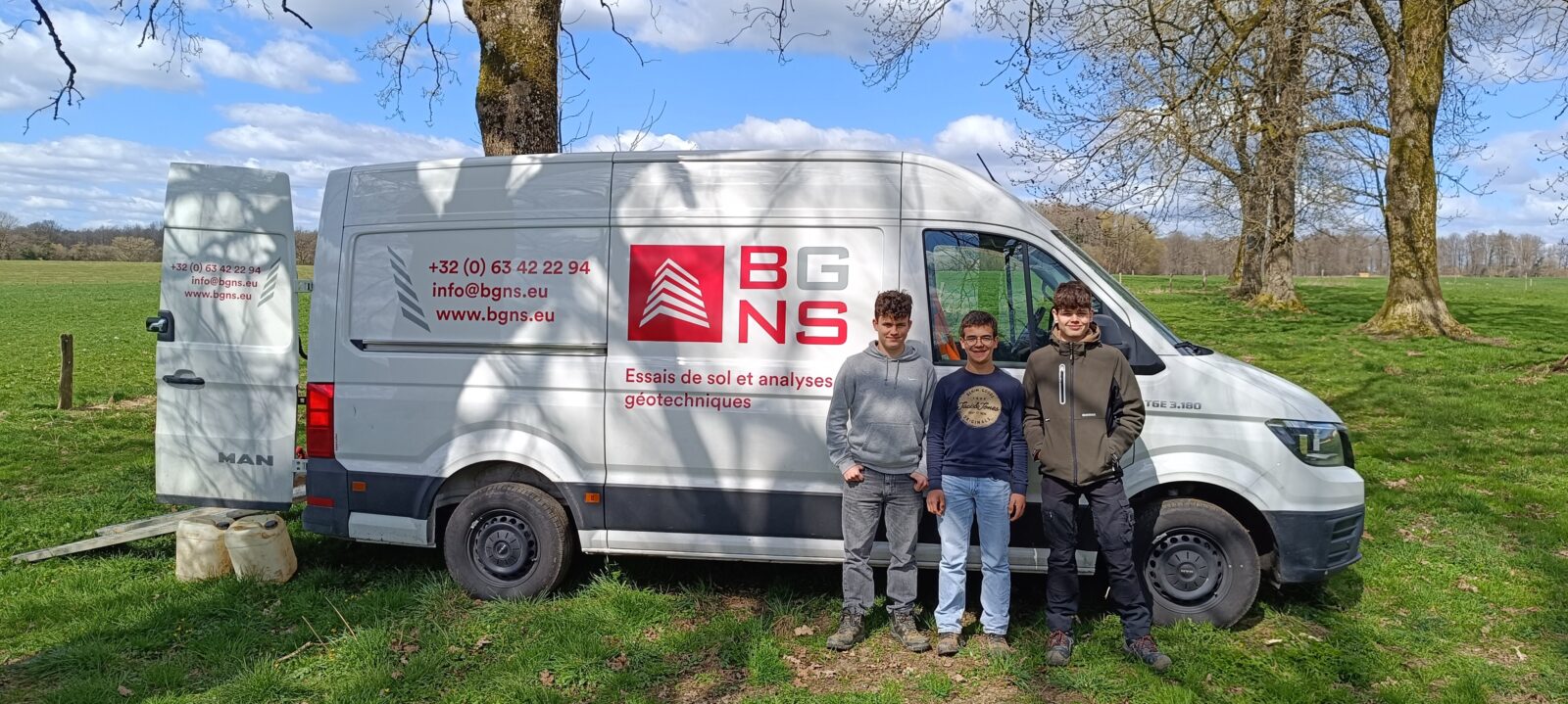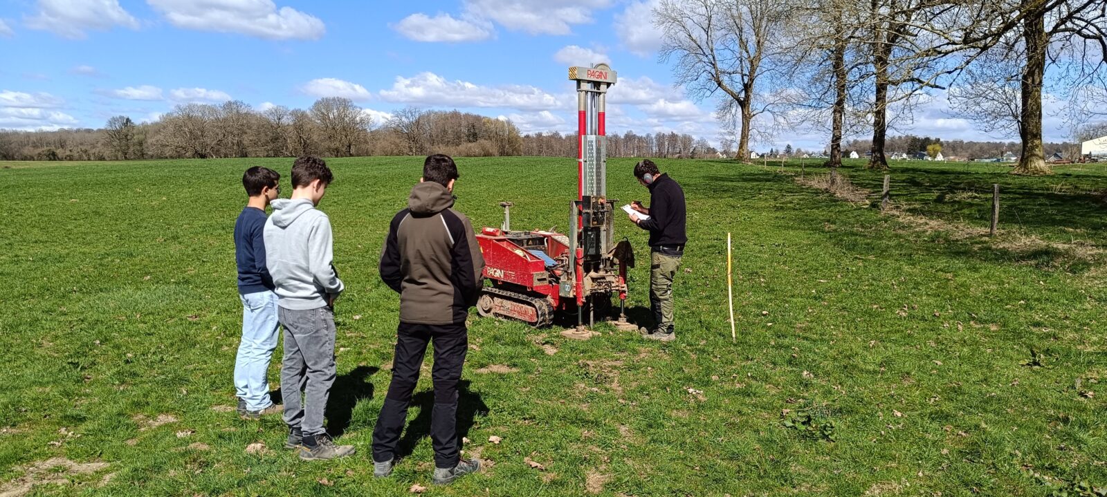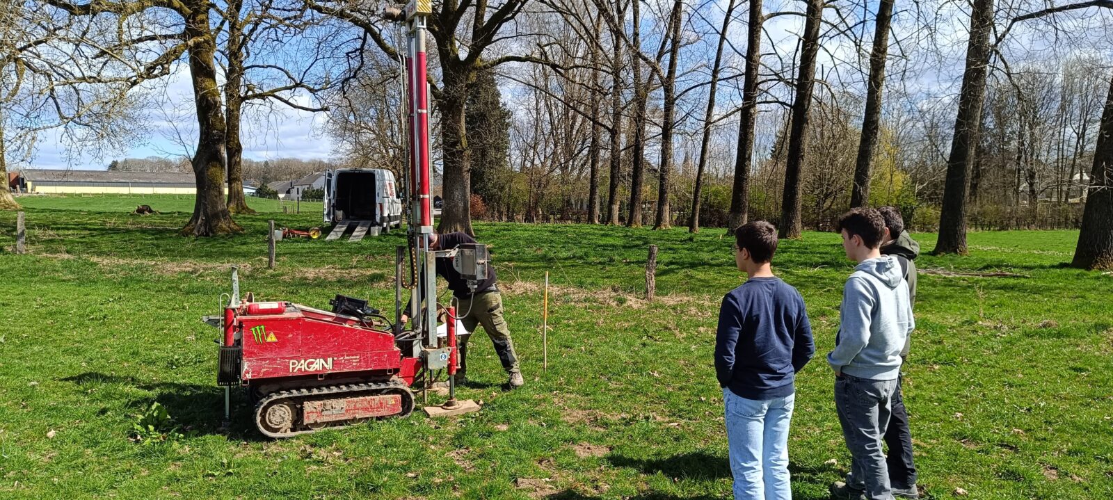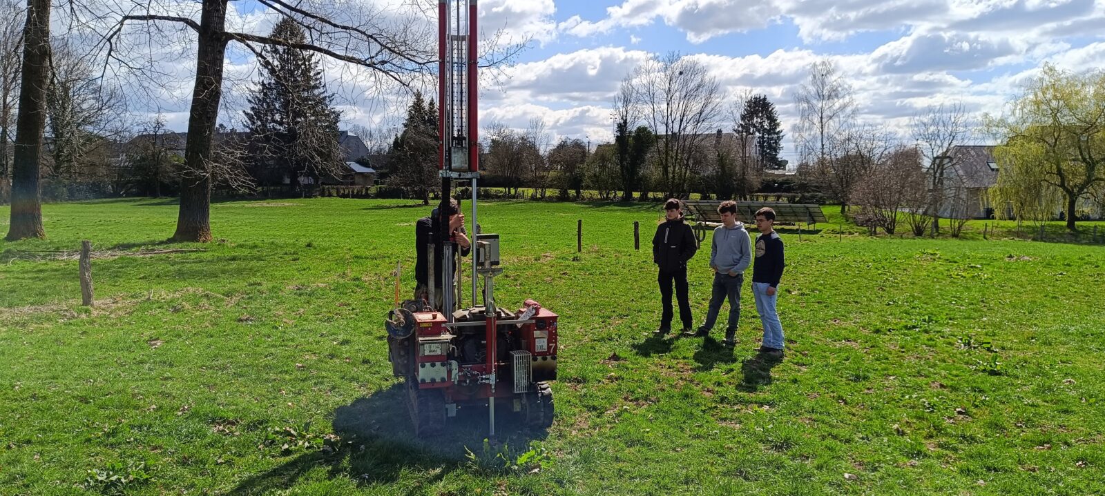 Les élèves ont pu assister à la réalisation de différents tests sur terrain par la société BNS (Bureau Nadin Sol) Bureau d’études BGNS . Des tests de percolation permettant de déterminer les capacités d’infiltration d’eau dans les sols et des tests au pénétromètre dynamique permettant de déterminer la capacité portante d’un sol. Le tout en prévision d’une construction unifamiliale.