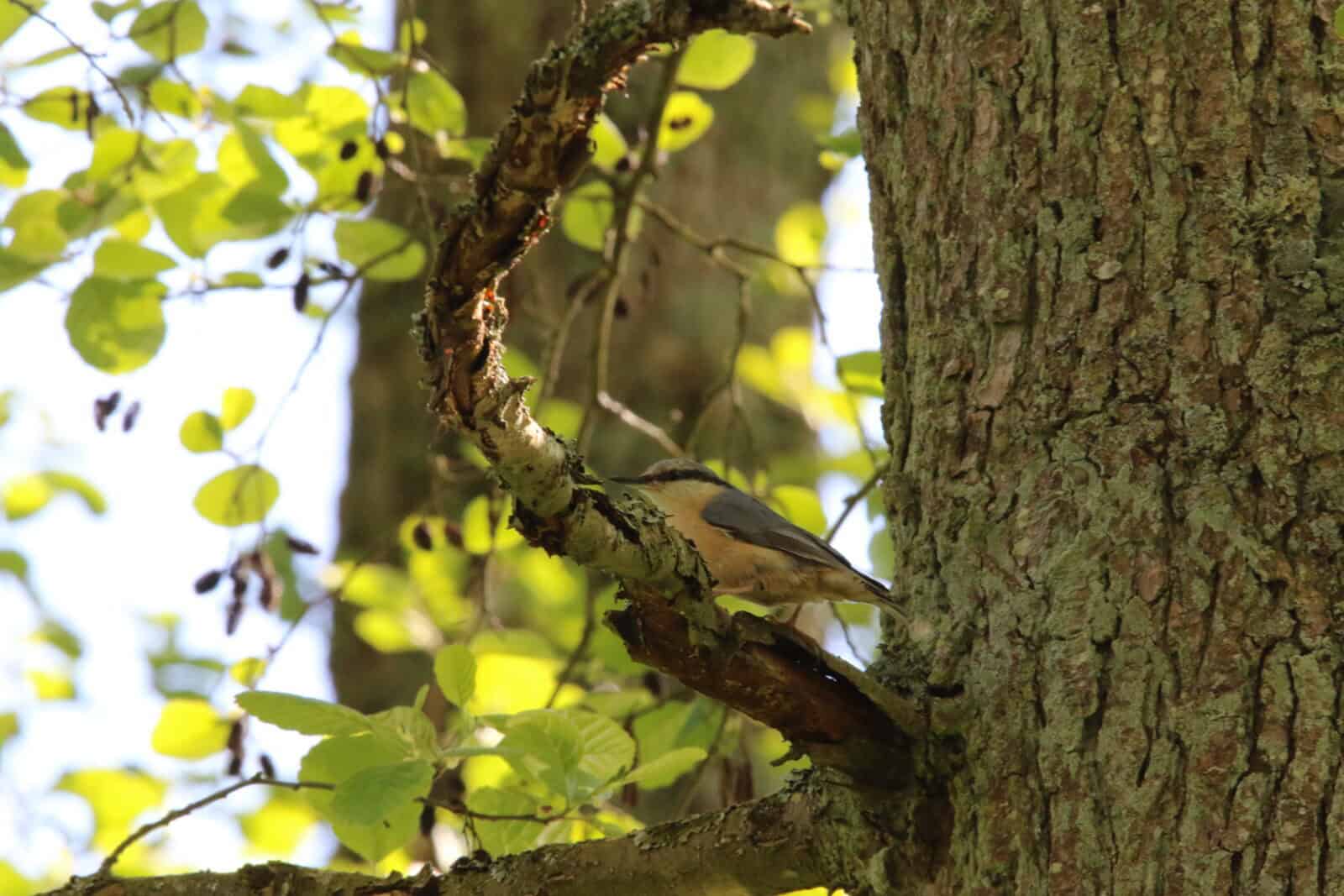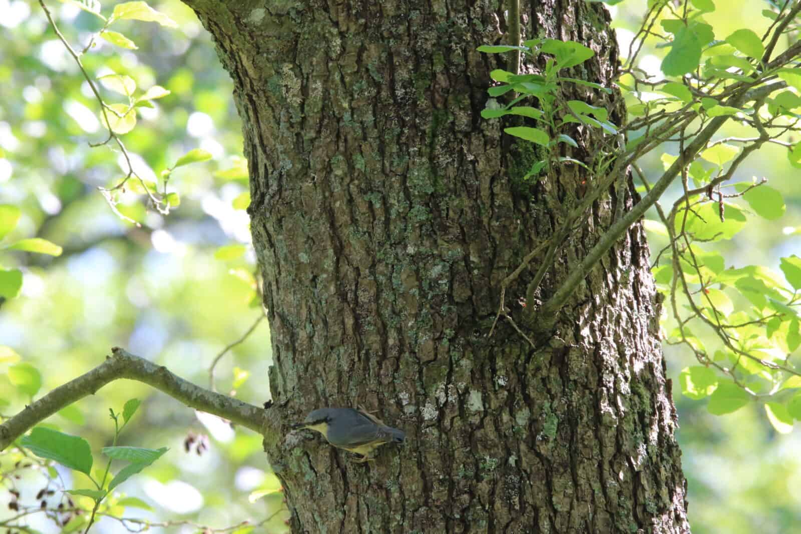 Par ailleurs, le grimpereau des jardins se confond parfaitement avec l’écorce du vieux frêne (n’hésitez pas à zoomer sur la photo du tronc) ; la sitelle torchepot quant à elle s’annonce aux promeneurs grâce à son sifflement si caractéristique.