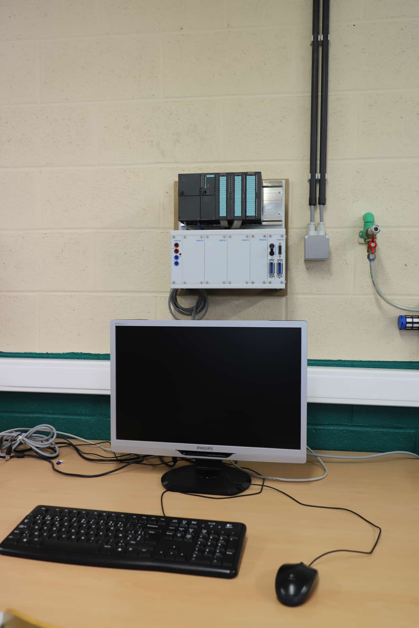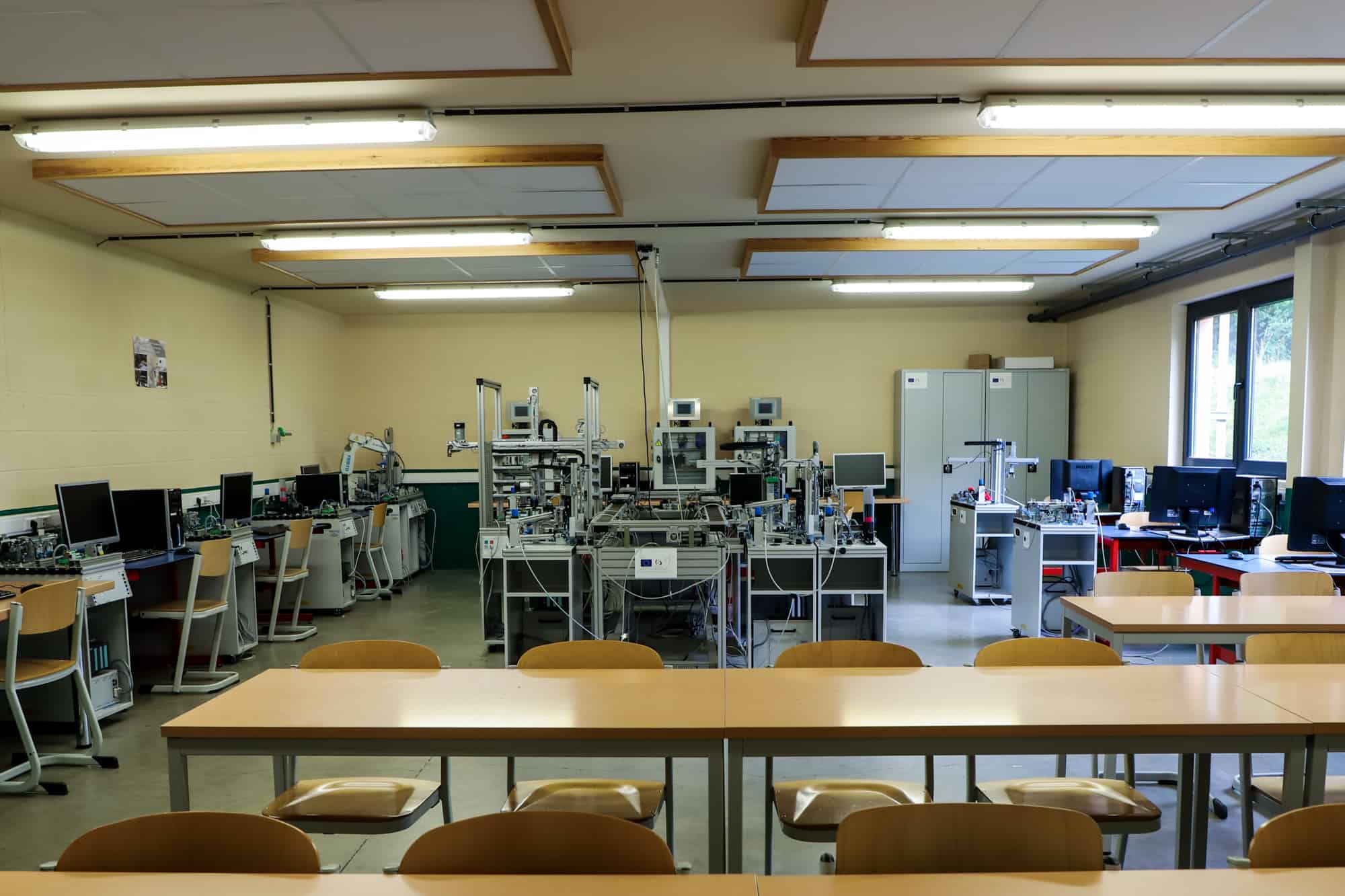 - 12 postes de travail avec logiciels de programmation (TIA Portal, Fluidsim, Ciros Robotic, EPlan)